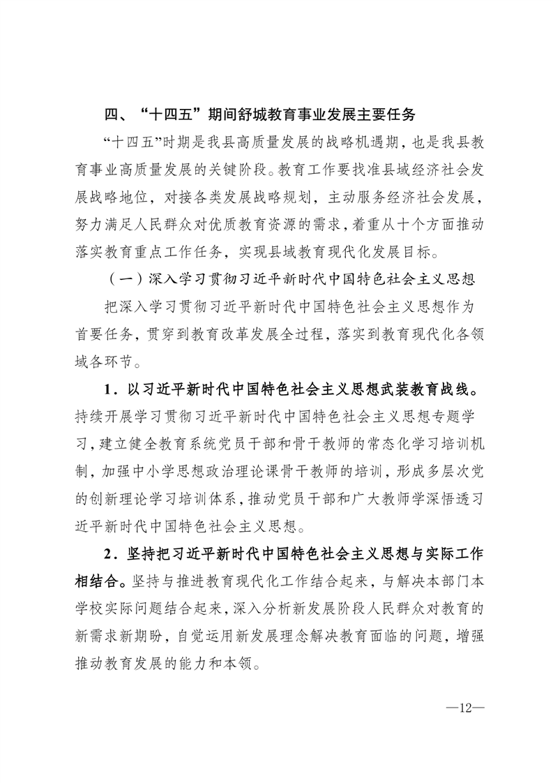 舒城縣“十四五”教育事業(yè)發(fā)展規(guī)劃