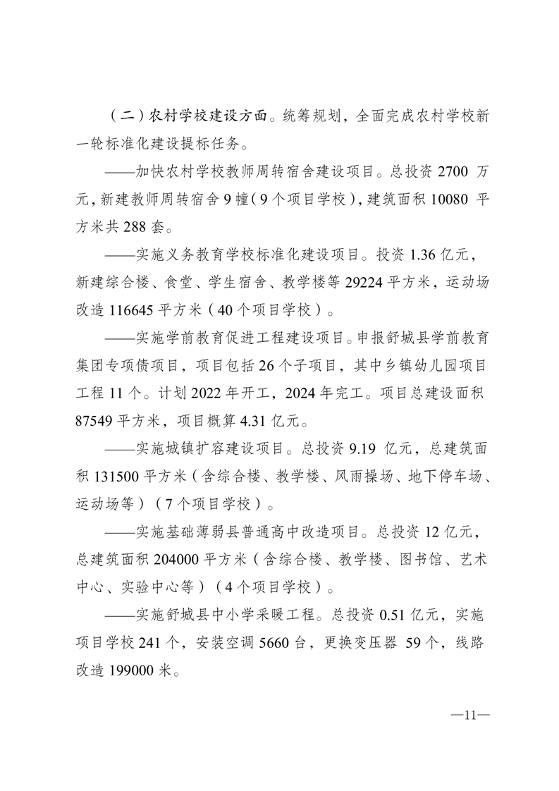 三、“十四五”期間舒城教育事業(yè)發(fā)展重點工程