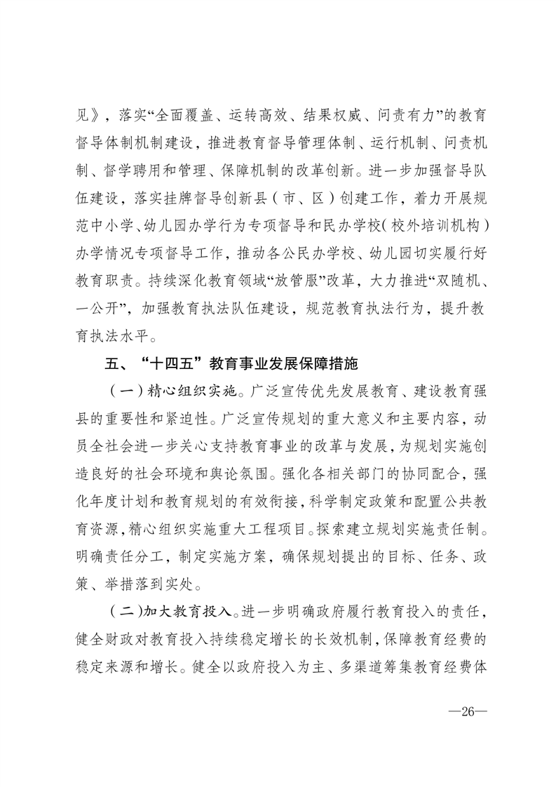 五、“十四五”教育事業(yè)發(fā)展保障措施