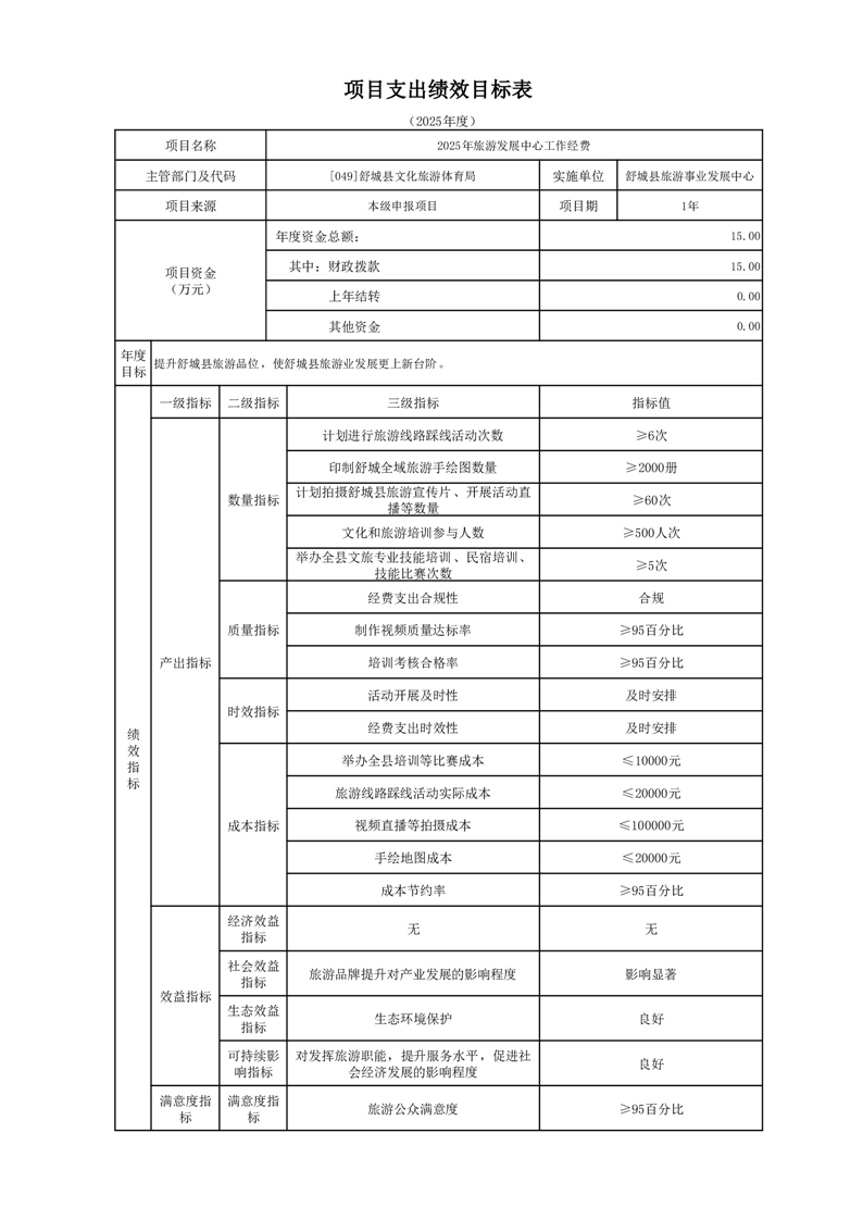 舒城縣旅游事業(yè)發(fā)展中心2025年度部門項目績效目標