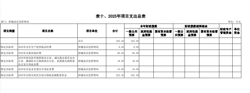舒城縣應(yīng)急管理局2025年部門項(xiàng)目文本(預(yù)算安排)