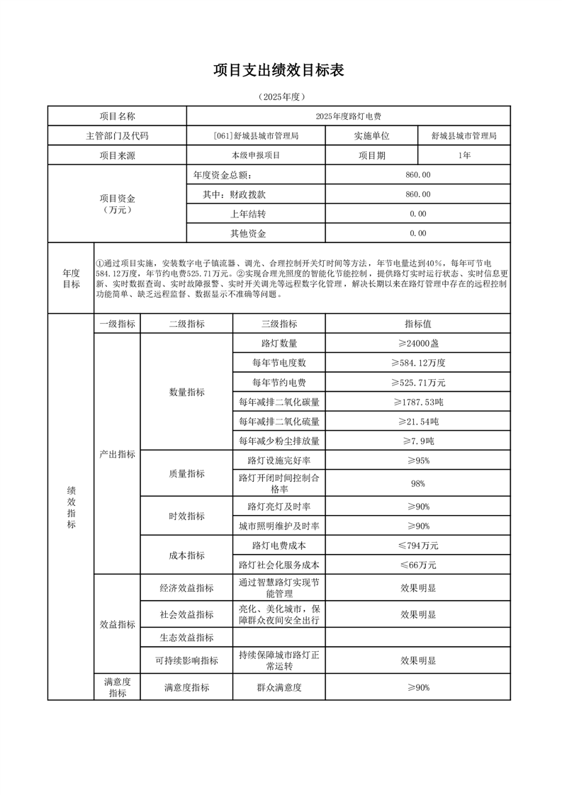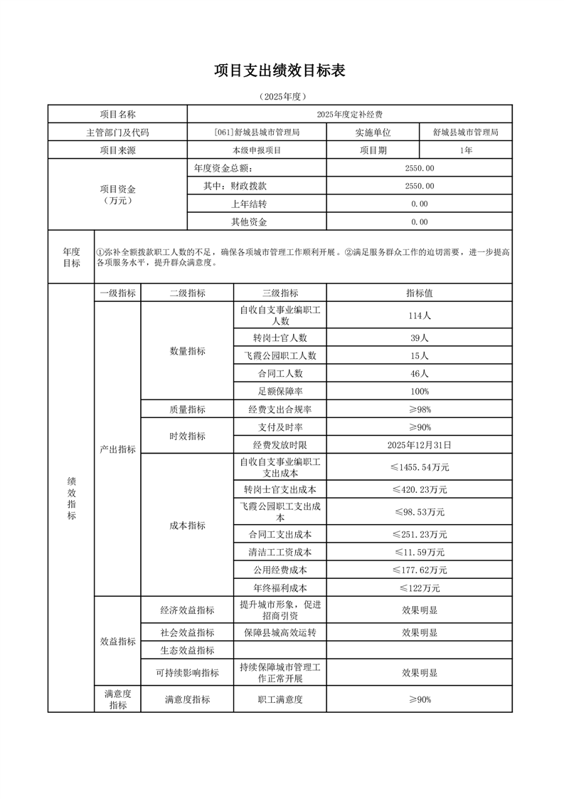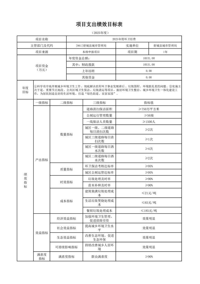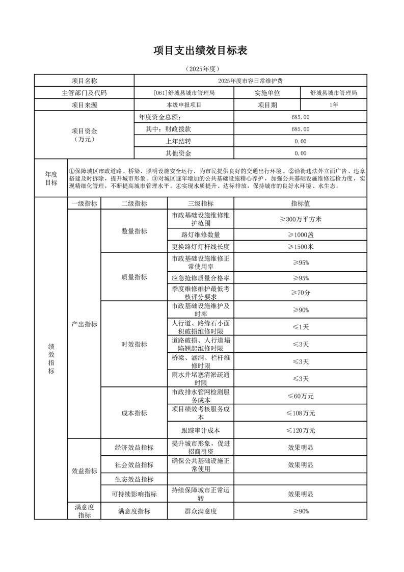 舒城縣城管局2025年部門項目績效目標(biāo)