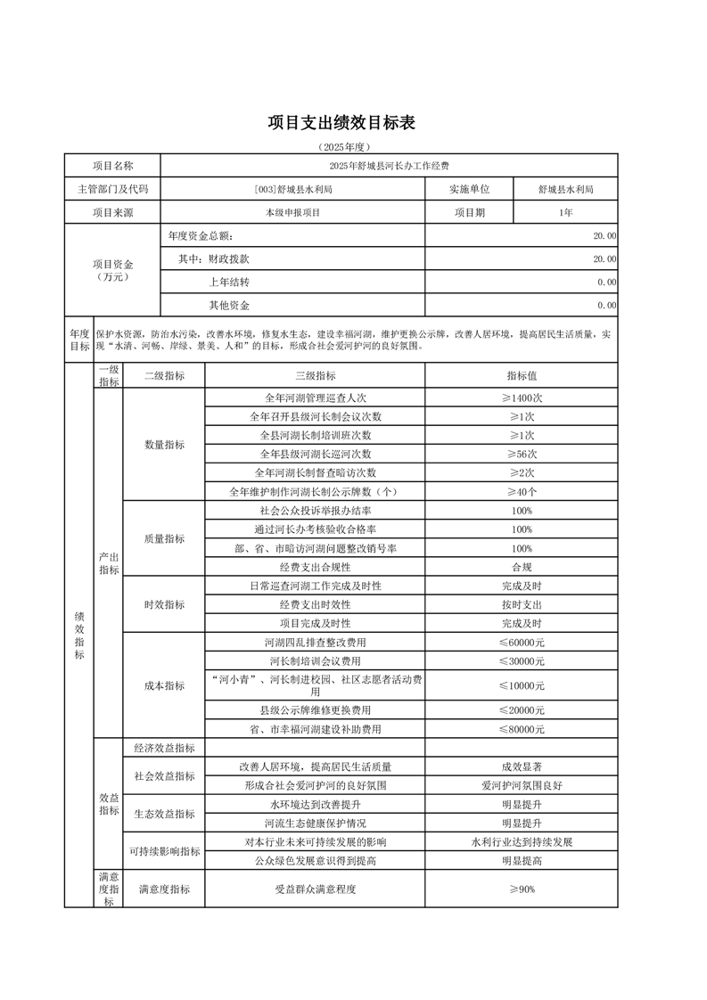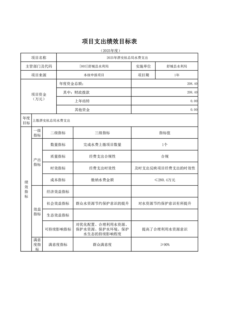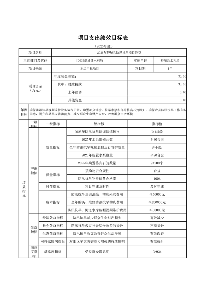 舒城縣水利局2025年部門項目績效目標