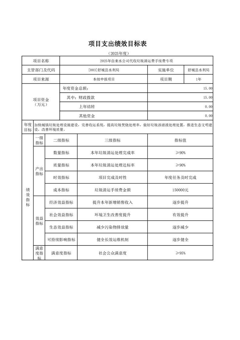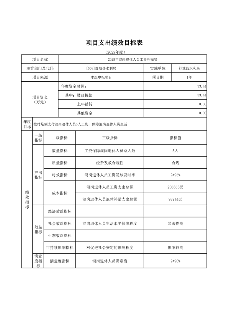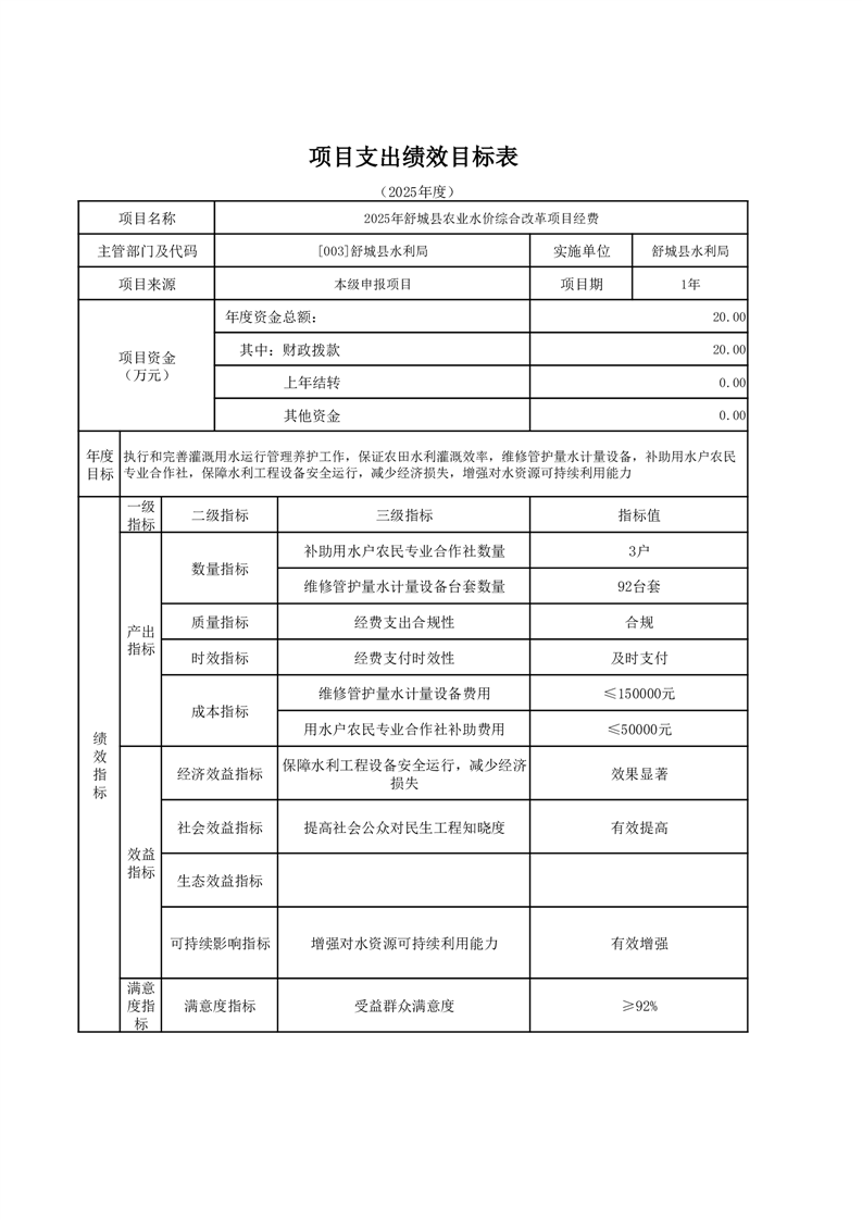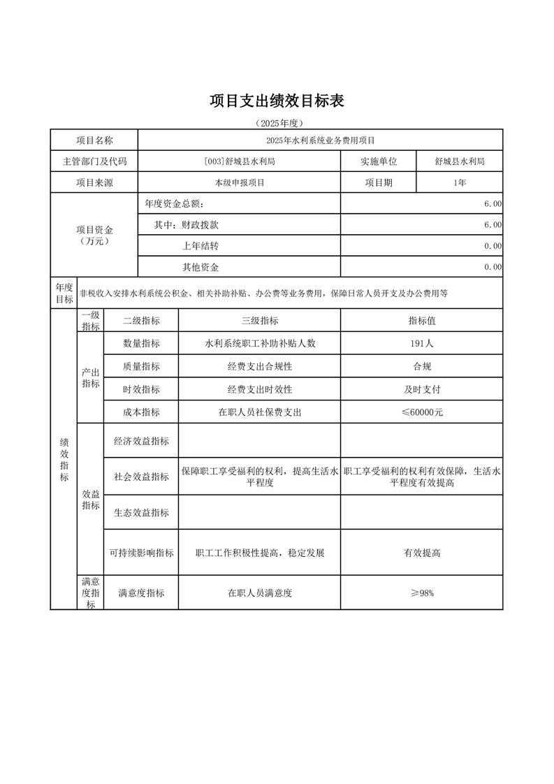 舒城縣水利局2025年部門項目績效目標