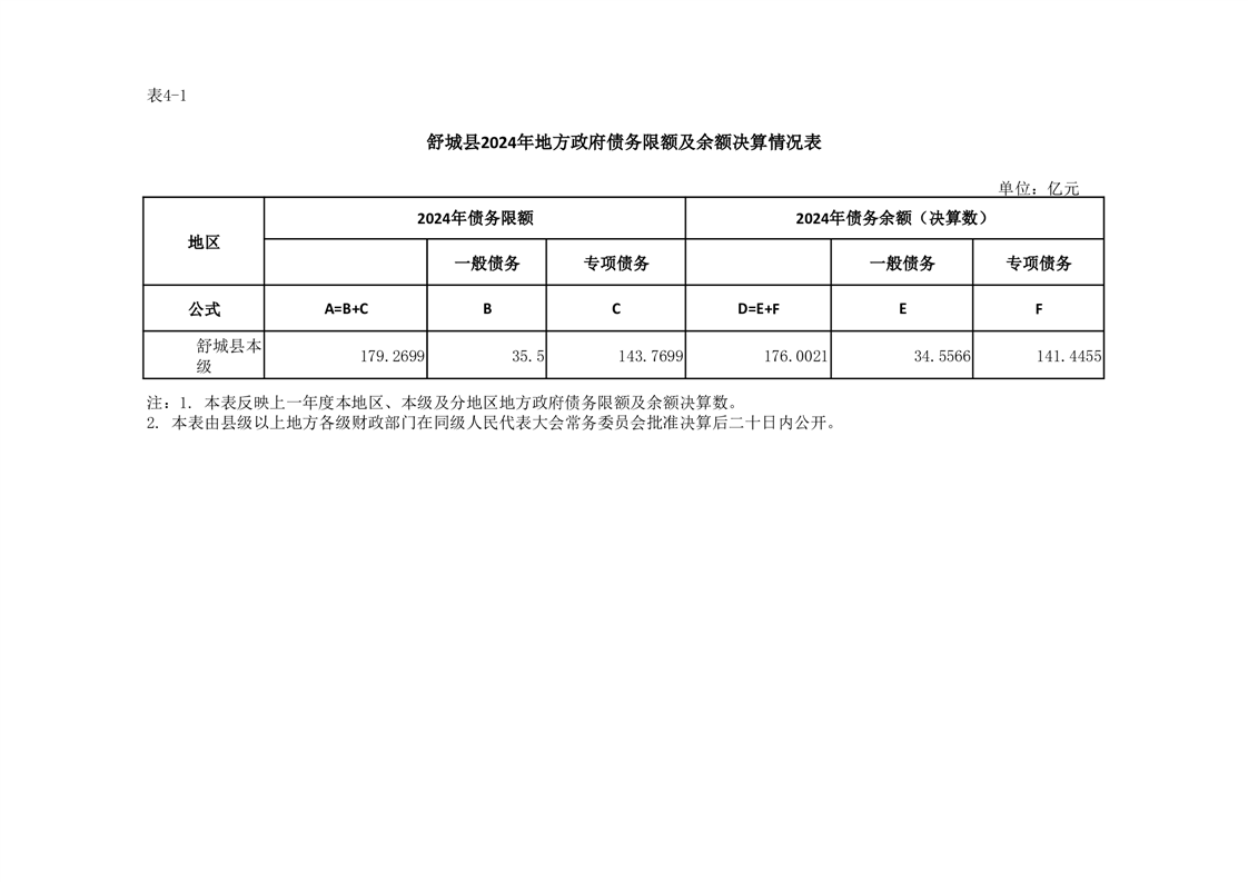 舒城縣2024年地方政府債務限額及余額決算情況表