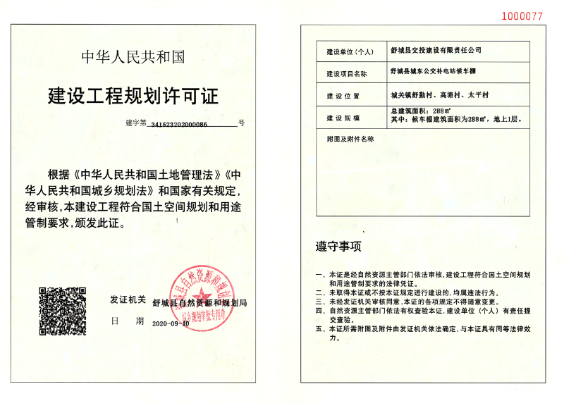舒城縣城東公交補電站及附屬廣場工程規(guī)劃許可證