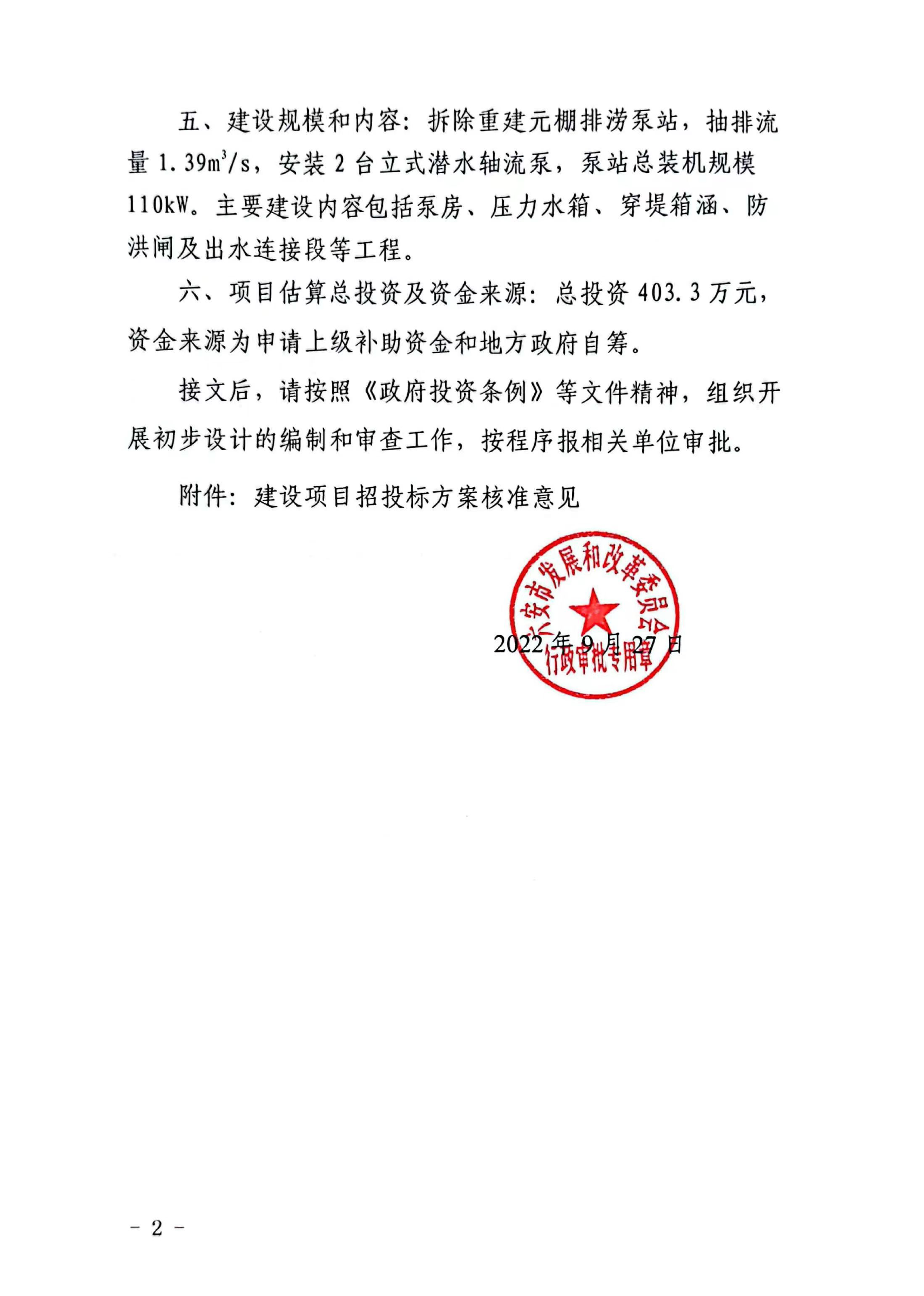 舒城縣排澇能力提升工程鄭圩站及元棚站重建工程項目