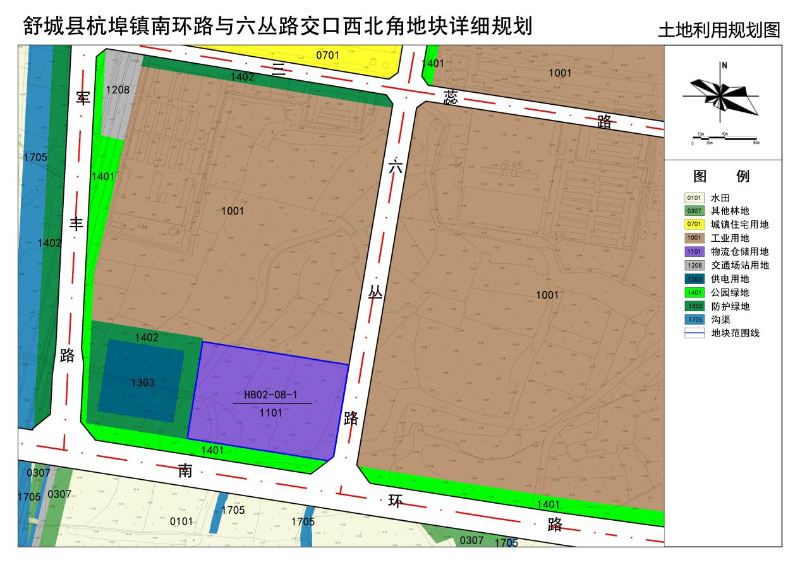 本次規(guī)劃地塊位于杭埠鎮(zhèn)南環(huán)路與六從路交口西北角,規(guī)劃總用地面積約22701平方米,用地性質(zhì)為物流倉儲用地。